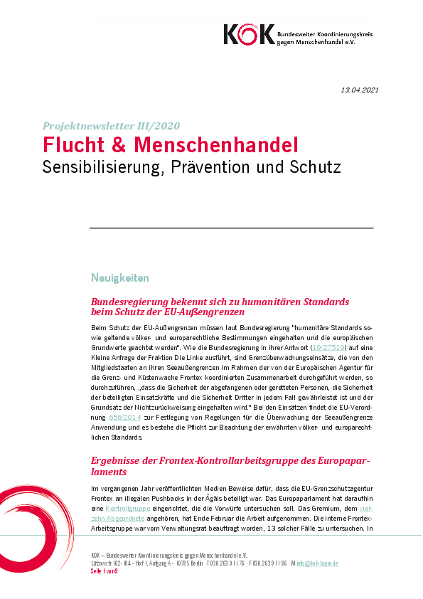 - Bundesregierung bekennt sich zu humanitären Standards beim Schutz der EU-Außengrenzen