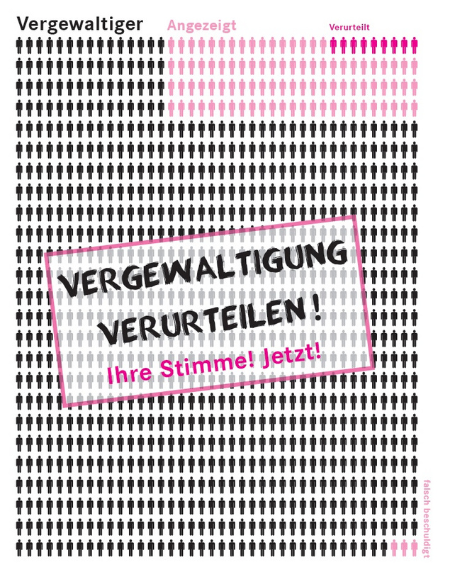 Ab sofort kann die Aktionspostkarte „Vergewaltigung verurteilen“ bei der Druckerei Braun bestellt werden und bei verschiedenen Anlässen, wie etwa Demos, Lesungen oder anderen Veranstaltungen verteilt werden. Das Bestellformular befindet sich hier. Die Postkarten sind an den bff adressiert, werden von diesem gesammelt und im September/Oktober in einer öffentlichen Aktion Bundesjustizminister Maas übergeben. Bis zum 30. September müssen die Postkarten beim bff eingegangen sein.