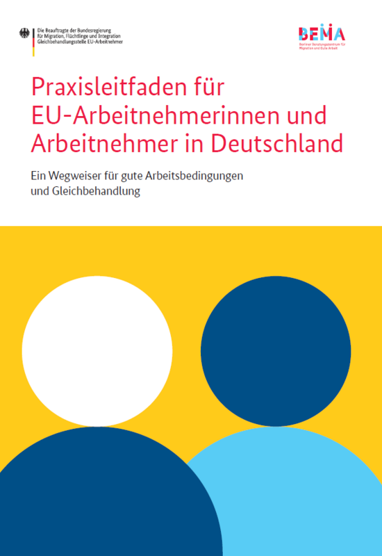 Die EU-Gleichbehandlungsstelle (EU-GS) und das Berliner Beratungszentrum für Migration und Gute Arbeit (BEMA) haben gemeinsam einen Praxisleitfaden mit Fallbeispielen erarbeitet. Basierend auf der Expertise und langjährigen Erfahrung der Beratungsstellen von Arbeit und Leben e.V. in Berlin sind 14 typische Fallbeispiele für den Leitfaden ausgewählt worden, die in der Praxis immer wieder auftauchen. Anhand der in diesen Fallbeispielen dargestellten Probleme werden im Detail die notwendigen Schritte vorgestellt, was die Betroffenen zur Durchsetzung ihrer Rechte tun können und zu beachten haben.