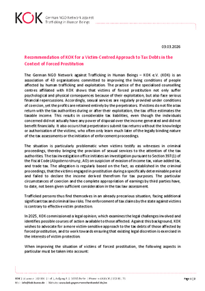 Recommendation of KOK for a Victim-Centred Approach to Tax Debts in the Context of Forced Prostitution