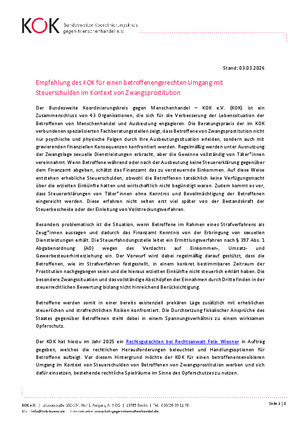 Empfehlung des KOK für einen betroffenengerechten Umgang mit Steuerschulden im Kontext von Zwangsprostitution