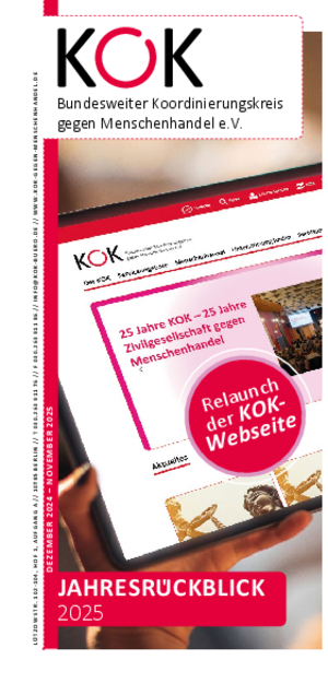Der KOK wird sich auch im kommenden Jahr mit Nachdruck dafür einsetzen, dass politische Maßnahmen, rechtliche Rahmenbedingungen und praktische Unterstützung ineinandergreifen. Nur so können die Rechte der Betroffenen wirkungsvoll gestärkt werden.